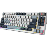 کیبورد گیمینگ MSI GK600 TKL Wireless Sky محصولی از برند معتبر MSI است که برای گیمرهای حرفهای طراحی شده است. این کیبورد با حذف بخش نامپد (Tenkeyless) فضای بیشتری روی میز گیمینگ ایجاد کرده و آزادی حرکت موس را افزایش میدهد. بدنه آلومینیومی برسخورده، حس مقاومت و کیفیت ساخت بالایی را منتقل میکند و در عین حال ظاهری مدرن و چشمنواز دارد.